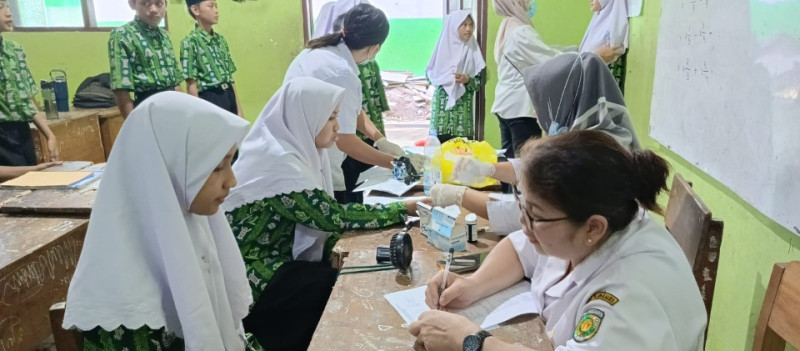 Deteksi Dini Anemia, MTsN 2 Kota Palangka Raya Lakukan Pemeriksaan Hb Remaja Putri Kelas 7