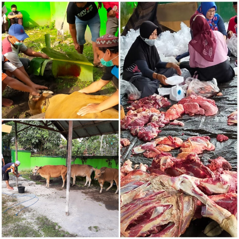 Sehari setelah pelaksanaan Salat Idul Adha, Madrasah Tsanawiyah Negeri (MTsN) 2 Kota Palangka Raya menyembelih tiga ekor sapi kurban. Rabu (21/7/2021)