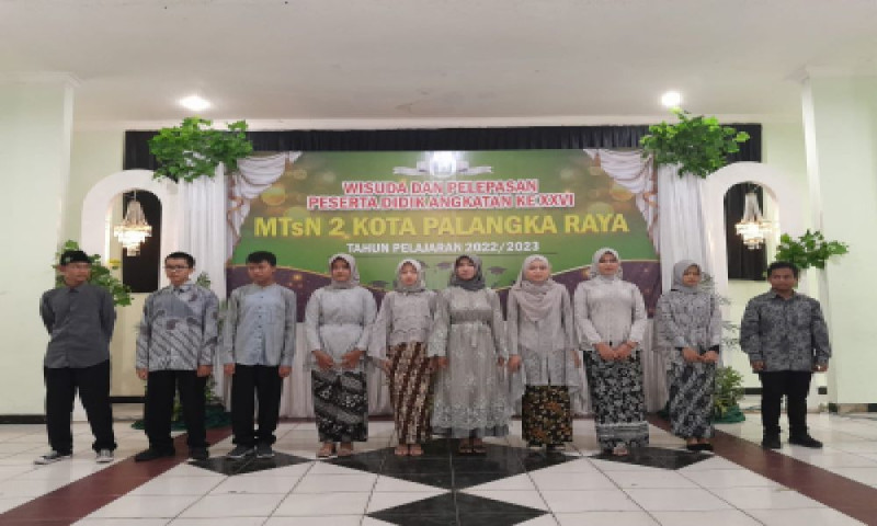 Sebanyak 286 peserta didik kelas IX Madrasah Tsanawiyah Negeri (MTsN) 2 Kota Palangka Raya Angkatan Ke XXVI mengikuti Proses Wisuda dan Pelepasan di Gedung Palampang Tarung jalan Tjilik Riwut Km. 5. Sabtu (27/5/2023).