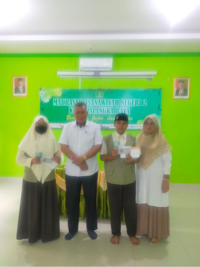 Sebanyak 28 peserta didik Madrasah Tsanawiyah Negeri (MTsN) Kota Palangka Raya menerima bantuan sosial Program Indonesia Pintar (PIP) Tahap II Tahun Anggaran 2023 dari kerjasama Kementerian Pendidikan Nasional (Kemdiknas), Kementerian Agama (Kemenag), dan Kementerian Sosial (Kemensos). Masing-masing peserta didik menerima Rp. 7500.000,00. Bantuan diserahkan di Aula MTsN 2 Kota Palangka Raya. Selasa (31/10/2023).