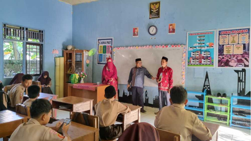 Didampingi Wakil Kepala Madrasah (Wakamad) Bidang Kurikulum H. Supiani berkeliling memantau langsung ke setiap kelas serta memberikan motivasi kepada peserta didik untuk semangat belajar dan serius dalam mengerjakan setiap soalnya.