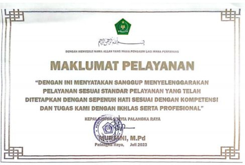 MAKLUMAT PELAYANAN MTSN 2 KOTA PALANGKA RAYA TAHUN 2023