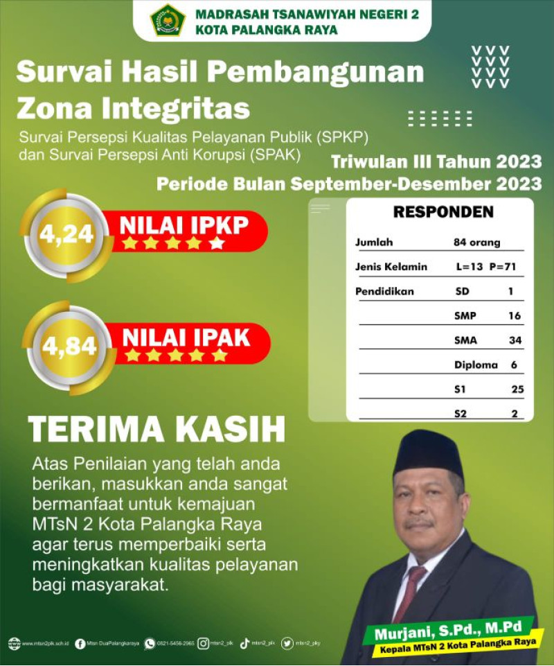 Hasil Survai Pembangunan Zona Integritas MTsN 2 Kota Palangka Raya