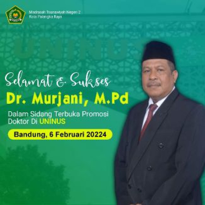 Kepala Madrasah Tsanawiyah Negeri (MTsN) 2 Kota Palangka Raya Murjani mengikuti Sidang Terbuka Promosi Doktor Program Studi Ilmu Pendidikan Sekolah Pascasarjana Universitas Islam Nusantara (UNINUS) di Bandung pada 6 Februari 2024 kemaren.