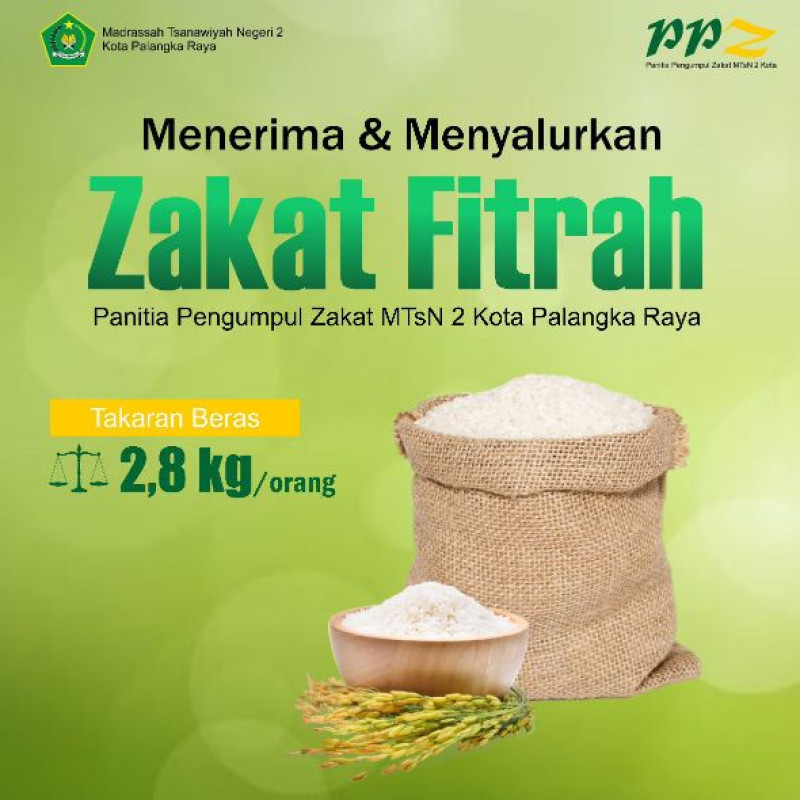 Madrasah Tsanawiyah Negeri (MTsN) 2 Kota Palangka Raya membentuk Panitia Pengumpul Zakat (PPZ) untuk menerima dan menyalurkan zakat fitrah peserta didik di lingkungan MTsN 2 Kota Palangka Raya.