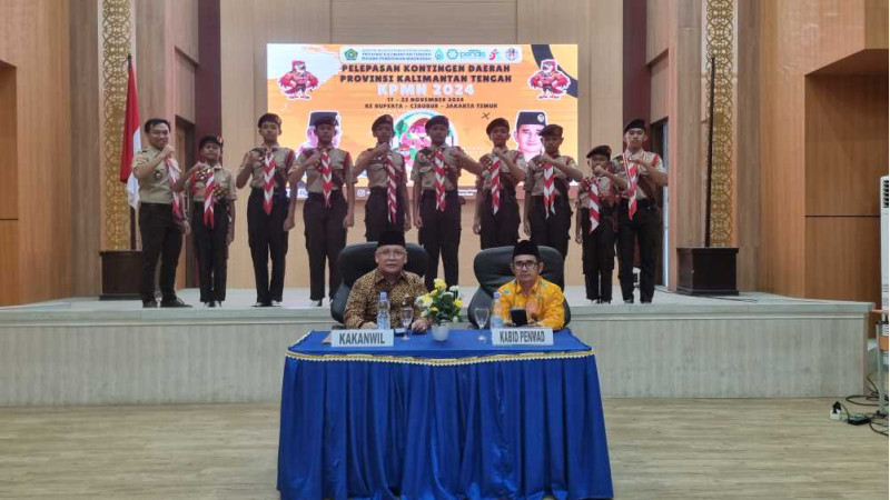 Gudep Sunan Ampel MTsN 2 Kota Palangka Raya yang tergabung dalam Kontingen Kalimantan Tengah secara resmi dilepas oleh Kepala Kantor Wilayah Kementerian Agama Provinsi Kalimantan Tengah, H. Noor Fahmi, untuk mengikuti Kemah Pramuka Madrasah Nasional (KPMN). Acara pelepasan ini berlangsung dengan penuh semangat dan antusiasme di Aula Kantor Wilayah Kementerian Agama Provinsi Kalimantan Tengah. Kamis (14/11/2024).