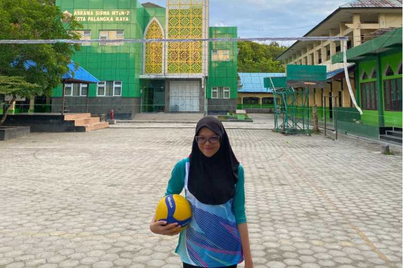 Hj. Adelia Dewi Nuryaman, salah satu pemain voli putri MTsN 2 Kota Palangka Raya, menyampaikan rasa percaya dirinya dalam menghadapi kompetisi ini.