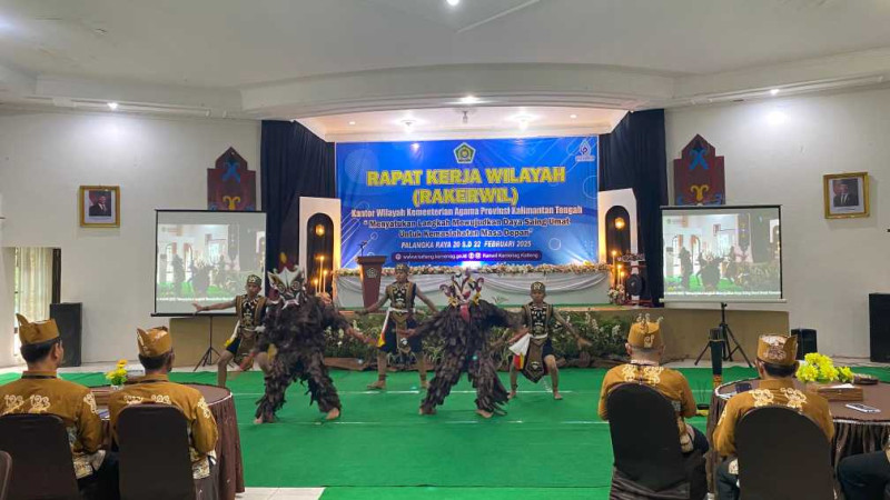 Spektakuler, Tari Manalampas Tampil Dipembukaan Rakerwil Kemenag Provinsi Kalteng 2025
