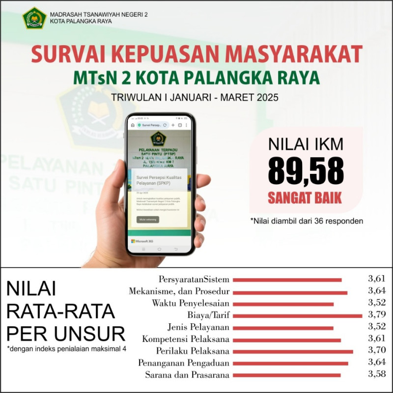 Survai Kepuasan Masyarakat MTsN 2 Kota Palangka Raya Triwulan I Januari-Maret 2025