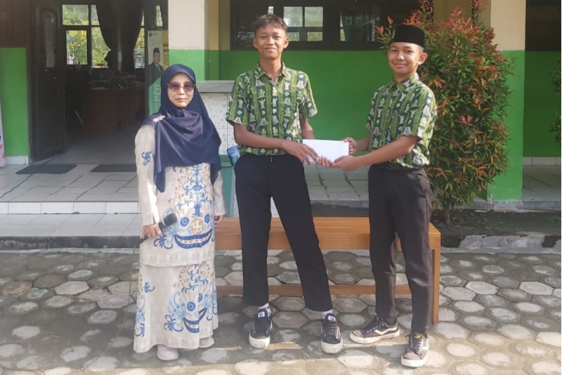 Penyerahan santunan dilakukan di halaman madrasah dengan penuh kehangatan dan empati. Pengurus MPK dan OSIM secara langsung menyerahkan bantuan tersebut kepada peserta didik penerima. Meskipun jumlahnya tidak besar, namun makna yang terkandung di dalamnya sangat mendalam menjadi bentuk dukungan moral agar peserta didik tetap semangat menempuh pendidikan meski sedang menghadapi ujian kehidupan.