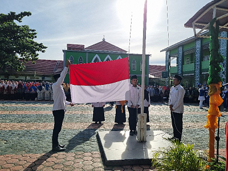 Profesional dan Kompak, Guru MTsN 2 Kota Sukses Kibarkan Bendera Merah Putih di HGN 2025