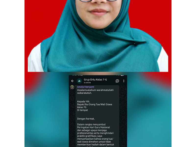MTsN 2 Kota Palangka Raya kembali menunjukkan komitmennya dalam menjaga profesionalitas dan integritas tenaga pendidik. Melalui grup kelas, Wali Kelas 7G, Amelia Febriyanti, menyampaikan imbauan penting kepada orang tua dan peserta didik terkait peringatan Hari Guru Nasional (HGN) tahun 2025....