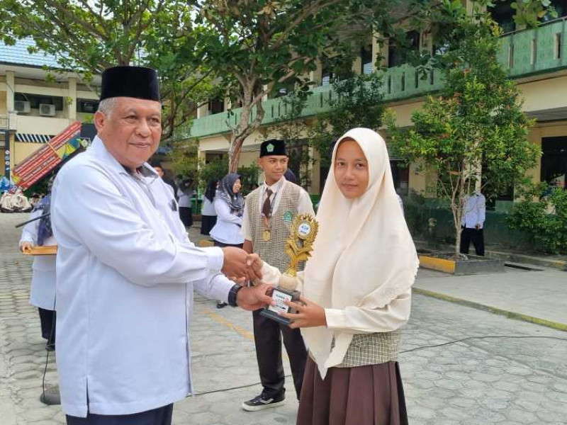 Madrasah Tsanawiyah Negeri (MTsN) 2 Kota Palangka Raya Murjani, secara resmi menyerahkan piala juara Olimpiade Bahasa Arab (OBA) ke-7 yang dilaksanakan oleh Forum MGMP Bahasa Arab se-Indonesia, kepada Siti Azzahra yang berhasil meraih juara 3, dan peserta didik lainnya...