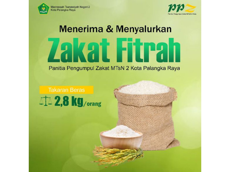 Madrasah Tsanawiyah Negeri (MTsN) 2 Kota Palangka Raya membentuk Panitia Pengumpul Zakat (PPZ) untuk menerima dan menyalurkan zakat fitrah peserta didik di lingkungan MTsN 2 Kota Palangka Raya.Koordinator PPZ MTsN 2 Kota Palangka Raya Muhammad Dalhar mengatakan pihaknya siap menerima...