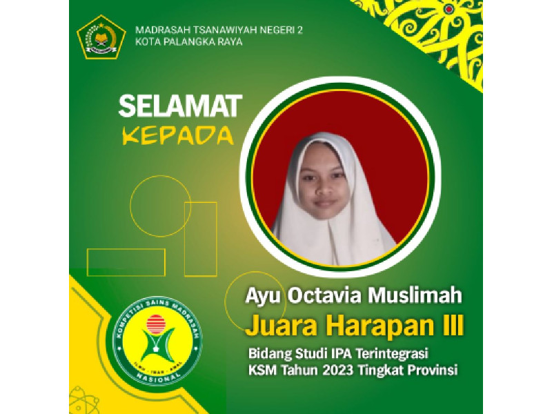 Peserta didik Madrasah Tsanawiyah Negeri (MTsN) 2 Kota Palangka Raya berhasil menorehkan prestasi di ajang Kompetisi Sains Madrasah (KSM) Tingkat Provinsi Kalimantan Tengah Tahun 2023, Kali ini di Bidang Studi IPA Terpadu Terintegrasi meraih Juara Harapan III.Koordinator Sains MTsN 2...