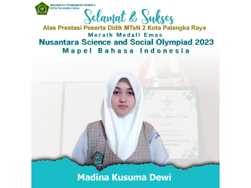 Prestasi membanggakan di Bidang Akademik kembali ditorehkan peserta didik Madrasah Tsanawiyah Negeri (MTsN) 2 Kota Palangka Raya di Tingkat Nasional, yaitu Lomba Nusantara Science dan Social Olympiad 2023 yang diadakan Oleh CV. Divya Cahaya Prestasi.Kepala MTsN 2 Kota Palangka...