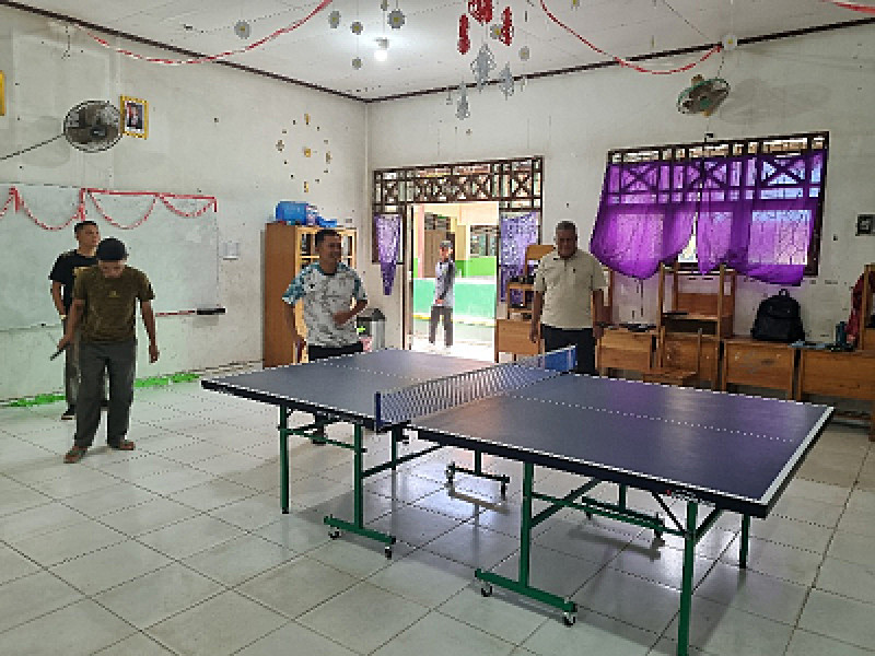 Kepala MTsN 2 Kota Palangka Raya, Murjani, meninjau langsung latihan guru-guru yang akan bertanding pada Kejuaraan Hari Amal Bakti (HAB) Kementerian Agama Kota Palangka Raya cabang olahraga tenis meja. Latihan berlangsung di ruangan olahraga madrasah dan diikuti dengan penuh semangat...