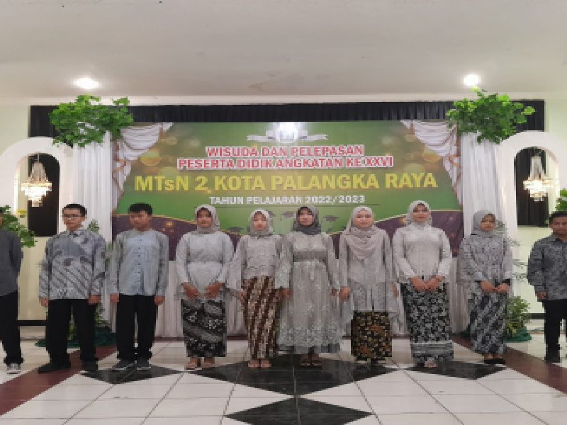 Sebanyak 286 peserta didik kelas IX Madrasah Tsanawiyah Negeri (MTsN) 2 Kota Palangka Raya Angkatan Ke XXVI mengikuti Proses Wisuda dan Pelepasan di Gedung Palampang Tarung jalan Tjilik Riwut Km. 5. Sabtu (27/5/2023).Kepala MTsN 2 Kota Palangka Raya Murjani dalam...